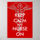 Keep calm and nurse on posters with caduceus. Create your own funny Keep calm and carry on parody. Customise background colours and text the way you want it.