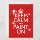 This reads Keep Calm and Paint On, in the style of the classic keep calm poster. There are splashes of paint all around the words. It''s a fun, bright design, which is perfect for both artists and decorators. Wonderful t-shirts for when you're decorating, or business cards for the professionals.