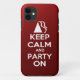 Keep Calm and party on, a variation of keep calm carry on, in red background and white text
