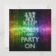 KEEP CALM AND PARTY ON with disco dancers. Design based on the 1939 British morale poster "Keep Calm and Carry On".