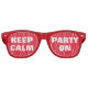 Keep calm and party on red shade sunglasses. Personalise, make your own funny keepcalm meme parody.  Keep calm and carry on slogan. Festive props for him or her.