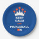 Keep Calm and Pickleball On, Blue Orange and White Paper Plate