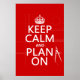 This reads Keep Calm and Plan On, in the style of the classic keep calm poster. There are faint design lines all over the design, and a pair of compasses next to the words. It's a beautiful stylish and elegant design, perfect presents for architects and planning officers and everyone who makes a living through plans and planning.