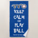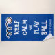 Keep calm and play baseball funny beach towel gift for coach or player. Cute personalised beachtowel for him or her. Make your own fun towel for pool, beach or sports. Humourous present for baseball player, coach, sports trainer, teacher, kids, retired person, friends, family, girl, boy, teenager etc. Customisable in different colours. Blue and white colour example. Bold typography template. Add your own name, funny quote or saying. Ball logo with fun typography template.