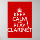 This reads Keep Calm and Play Clarinet, in the style of the classic keep calm poster. The silhouette of a clarinet rests against the words. It's a wonderful design and perfect gift for anyone who plays clarinet.