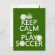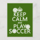 This reads 'Keep Calm and Play Soccer' in the style of the original poster. Some of the O's have been replaced with soccer balls, and others sit atop the words. It's a fun design which will go down great for all lovers of soccer at all ages. Perfect for parties and gifts.