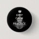 Of the "keep calm" motto, this "Keep Calm and Practice" Your Violin Button is a cute little statement for violin players. Black colour adorned with grey violin image in background.