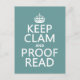 Keep Calm and Proofread (clam) (any colour) Postcard