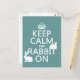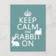 This is the classic war poster "Keep Calm and Carry On" reworded to "Keep Calm and Rabbit On". There are silhouettes of rabbits sitting on and next to the words. They make beautiful cute presents/treats for owners and lovers of rabbits or bunnies, or just for the chatterbox in your life.