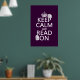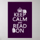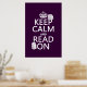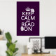 This reads Keep Calm and Read On, in the style of the classic keep calm poster. There are piles of books beside and on the words. This is a really popular design in my store, perfect for everyone who loves to read. It makes a great range of gifts for book lovers, readers and writers.