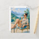 Keep Calm and Relax Watercolor Postcard Girl Woman Mountain Coffee Lake Nature