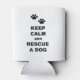 This item displays two paw prints along with the text "Keep Calm and Rescue A Dog." This is a great item for dog owners, shelter volunteers, animal rescuers, and animal advocates.
