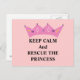 A soft pink background with a pink princess crown, says 'keep calm and rescue the princess'