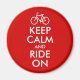Red and white customisable "Keep Calm and Ride On" design for cycling. You can change the background colour. If you need smaller text size, select all so that you change the bicycle outline at the same time.