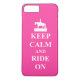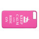Funny equestrian parody take on the popular vintage keep calm and slogan with a ride on text, on a cute girly plain pink background, and an animal horse motif. Visit the CUSTOMIZEDGIFTS STORE for more Keep Calm gifts.