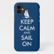 Keep calm and sail on iPhone 5 case | Nautical theme. Customisable cover. Create your own funny Keep calm and carry on parody. Customise navy blue background colours and text the way you want it. Sailboat / sailing ship design. Cute boating gift idea for men women and kids.