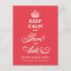 Ivory White Keep Calm Typography Text On A Red Background, Curly And Elegant Script, Funny Save The Date Announcement Postcard.