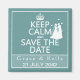 As well as invitations and magnets, 'keep calm and save the date' is available on many products, including postcards, ornaments, even tea towels.