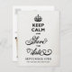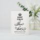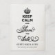 Black Keep Calm Typography Text On A White Canvas Texture Image Background With Curly And Elegant Script, Funny Save The Date Announcement Postcard.