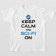 Keep Calm And Sci-Fi On. Funny sci-fi lover gift idea for a man, woman, teens or kids who love science fiction, outer space, rocket ships and exploring the universe, and is a scifi geek or nerd. Do you love science fiction books, sci-fi tv shows or sci-fi movies? If you’re a sci-fi fan, and have a sense of humour, then this design is perfect for you! Great to wear to a science fiction convention.