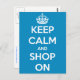 Keep Calm and Shop On Blue Postcard