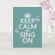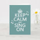 This reads Keep Calm and Sing On, in the style of the classic keep calm poster. There are music notes floating beside the words. It's one of my most popular designs, and popular with everyone who loves to sing.