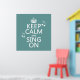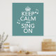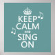 This reads Keep Calm and Sing On, in the style of the classic keep calm poster. There are music notes floating beside the words. It's one of my most popular designs, and popular with everyone who loves to sing.