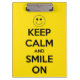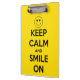 Keep Calm and Smile On Yellow Personalised Clipboard