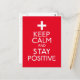 Keep Calm and Stay Positive You can customise the BACKGROUND colour by clicking the "CUSTOMIZE IT" button and change the colour. Keep Calm and Carry On was a motivational poster produced by the British government in 1939 in preparation for the Second World War.