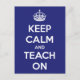 Keep Calm and Teach On Blue Postcard