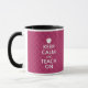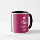 Pretty fuchsia magenta pink plaid background with white "keep calm and teach on" text, a fresh and feminine gift for the female teacher to provide motivation and inspiration from the classic "keep calm and carry on" British wwii propaganda. A lovely teacher appreciation gift. Copyright © www.CuteComfy.com