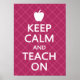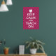 Pretty fuchsia magenta pink plaid background with white "keep calm and teach on" text, a fresh and feminine gift for the female teacher to provide motivation and inspiration from the classic "keep calm and carry on" British wwii propaganda. A lovely teacher appreciation gift. Copyright © www.CuteComfy.com
