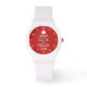 Keep Calm and teach on wrist watch gift idea for teachers. Customisable colours. Vintage Keep calm typography template with apple icon. Personalised red background colour and text. Cute Birthday gift idea for kindergarten, preschool, grammar school teachers, educator, tutor, friend, coworker, colleague, employee, student etc. Teaching presents for him and her.