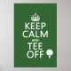 This is the classic Keep Calm poster reworded to Keep Calm and Tee Off. There is a silhouette of a golf ball on a tee next to the letters. It's a popular beautiful design, popular with all golf lovers. Makes great gifts for golfers, coaches, and fans alike.