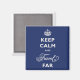 Keep Calm And Travel Far White Text & Curly Script Magnet