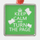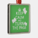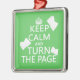 This is the classic war poster "Keep Calm and Carry On" reworded to "Keep Calm and Turn the Page". I've added silhouettes of books falling by the sides of the words, with fluttering pages.