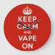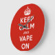 A vaper's funny rendition of the famous "Keep calm and carry on" World War II effort poster. The slogan is Keep Calm and Vape On and the colour is red. Vape on and be inspired, ecig lovers!