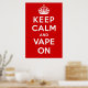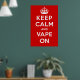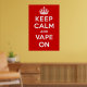A vaper's funny rendition of the famous "Keep calm and carry on" World War II effort poster. The slogan is Keep Calm and Vape On and the colour is red. Vape on and be inspired, ecig lovers!