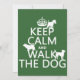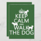 This is the classic war poster "Keep Calm and Carry On" reworded to "Keep Calm and Walk The Dog". There are silhouettes of dogs standing and sitting on and around the words. The design makes great presents or gifts for dog owners/lovers, or as a thank you for kennels/vets/rescue centres and dog walkers.