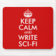 Red and white customisable "Keep Calm and Write Sci-Fi" design for authors.