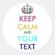 KEEP CALM and YOUR TEXT - customised background Classic Round Sticker