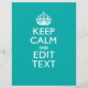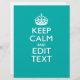 Your personalised Keep Calm saying on a fine custom turquoise accent colour decor. A personalised Keep Calm style saying on a one of a kind gift. Humourous or whimsical try on your creative words on two editable lines of text. Remember to use CAPITAL letters for best results.