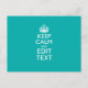 Keep Calm And Your Text on Accent Turquoise Postcard