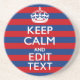 KEEP CALM AND Your Text on Blue Stripes Coaster