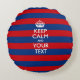 KEEP CALM AND Your Text on Blue Stripes Round Cushion