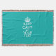 Keep Calm And Your Text on Peacock Turquoise Throw Blanket