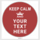Utilise these sticker decals for signs or floor markers to post notices and reminders to KEEP CALM and YOUR MESSAGE. The design is on an editable red colour. To change the colour, click on the CUSTOMIZE FURTHER TAB. Contact the designer if you'd like this design modified or on another product.