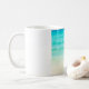 This beach mug features a photograph of calming blue ocean waters with gentle waves rolling onto the sand.