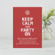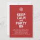 Fun Christmas party invitation featuring a snowflake and the text "Keep Calm and Party On" written in bold characters. © Mood 4 Cute
