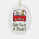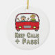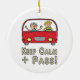 Keep Calm Driving Test shows a driving instructor and pupil taking test in funny car cartoon. The instructor is panicking but the new driver is calmly handling the car. A good luck, keep calm message for instructors and pupils involved in driving lessons and passing tests.